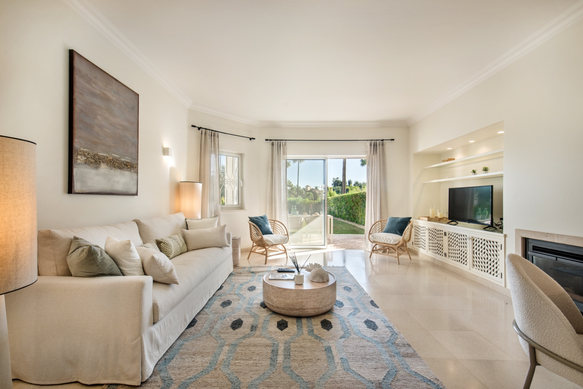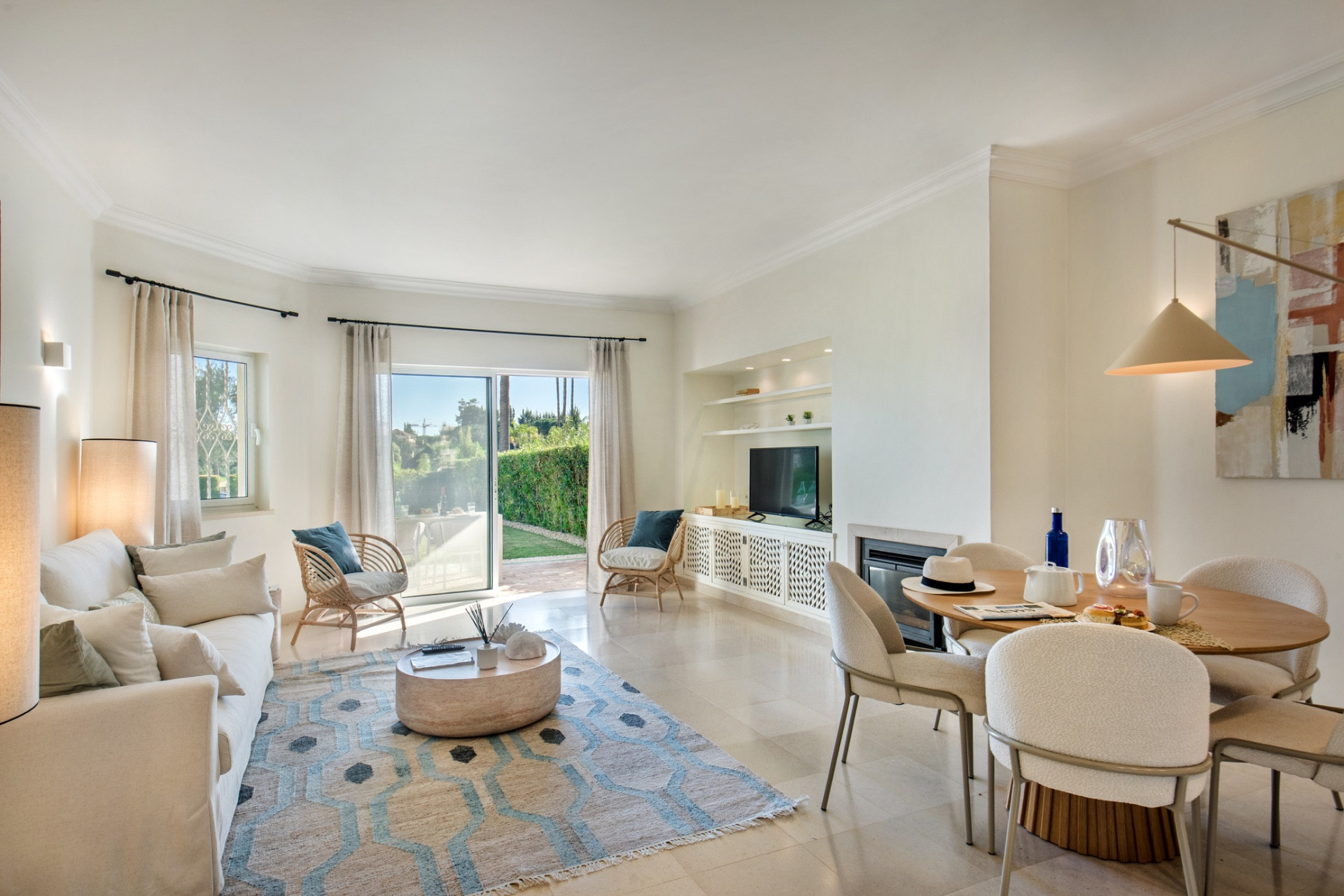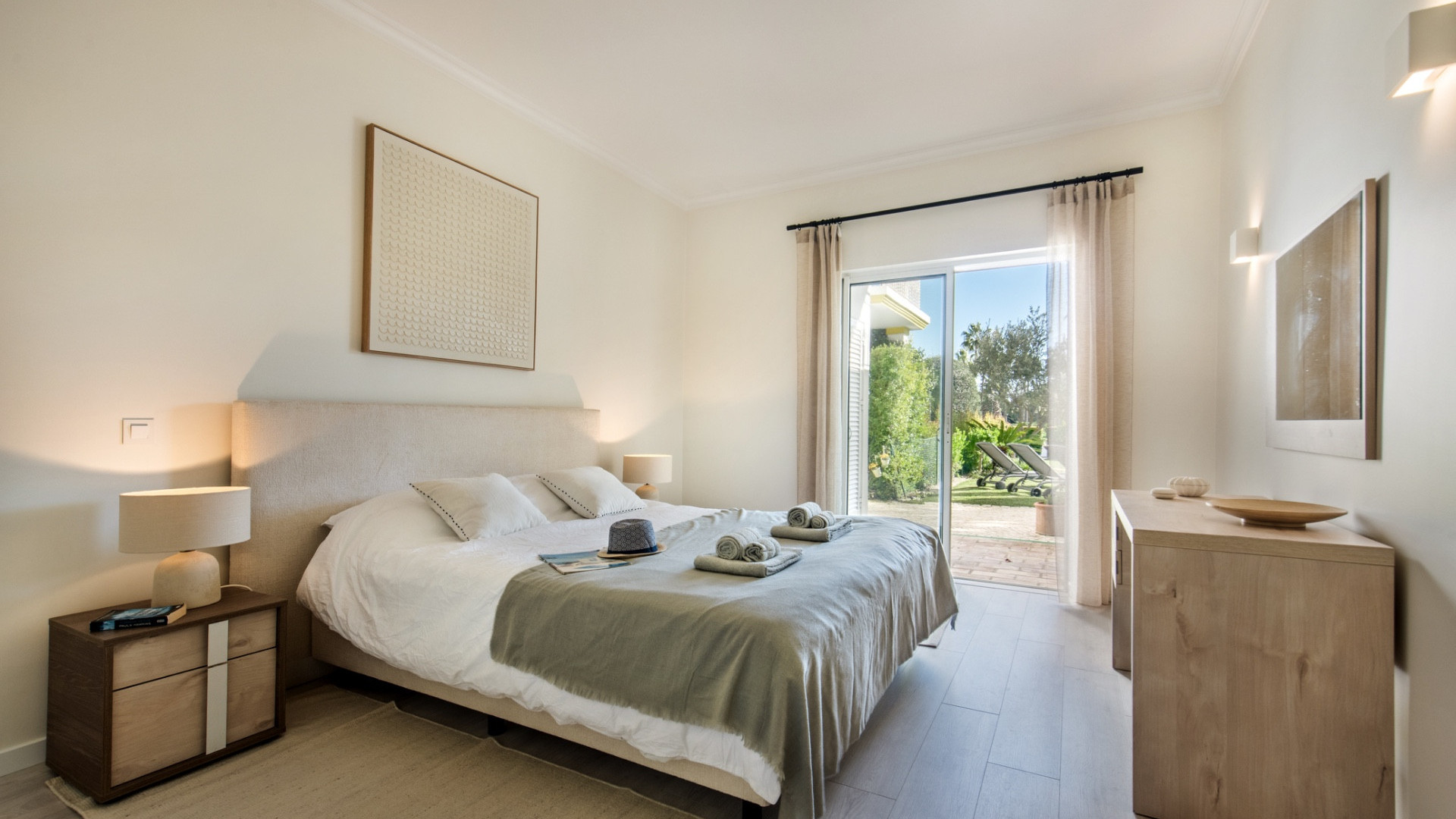 The apartment features two spacious en-suite bedrooms, along with a third guest bathroom, making it perfectly suited to UK, Irish and US travellers seeking space, convenience and comfort. Tastefully furnished throughout, the interior opens directly onto a private landscaped garden, ideal for outdoor dining, sunbathing or unwinding after a day at the beach or golf course.