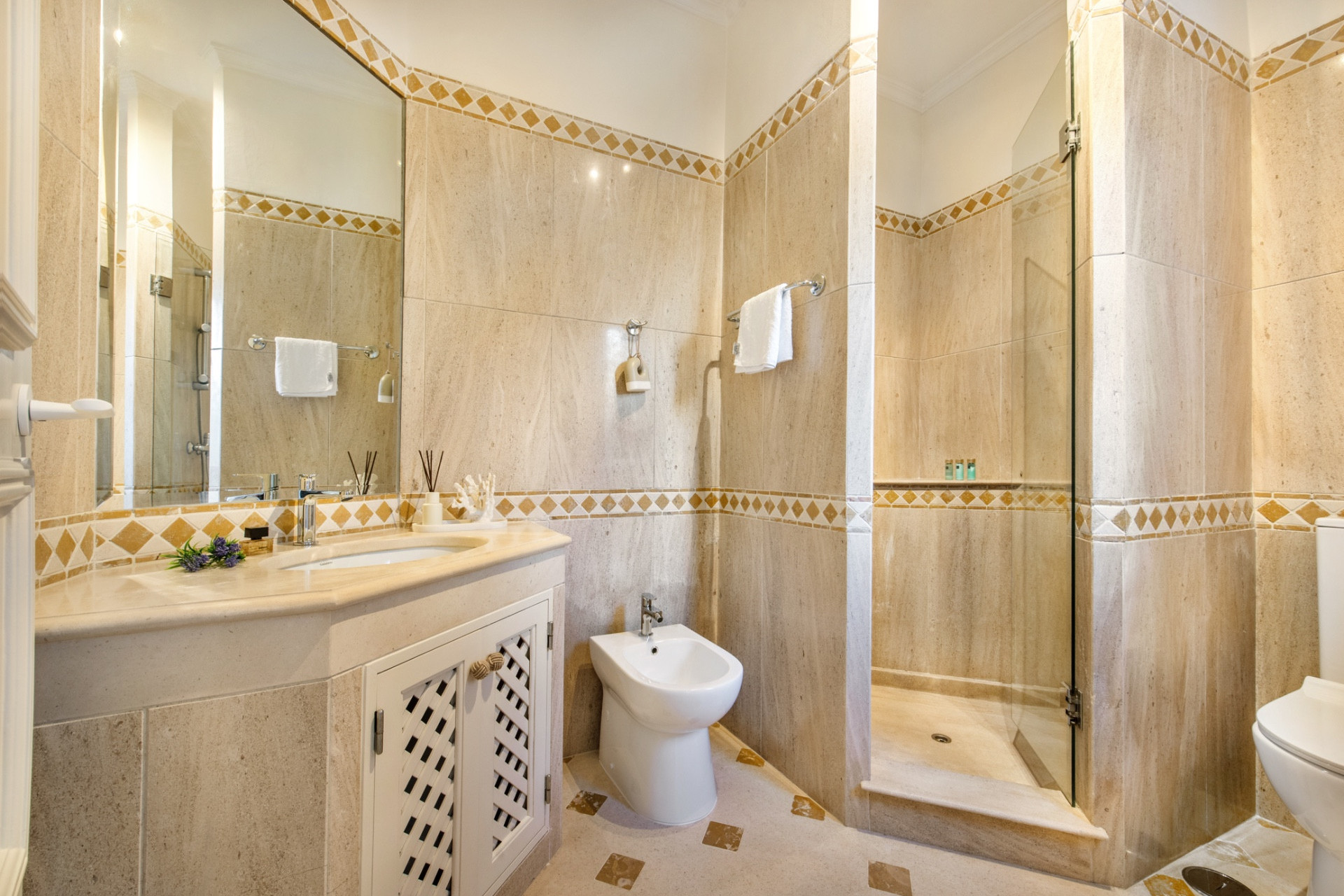 Guests staying in Encosta do Lago enjoy access to outstanding communal facilities, including a large swimming pool with poolside bar, creating a relaxed and sociable environment for both adults and children. Additional on-site amenities include tennis courts and a fully equipped gym, allowing guests to maintain an active lifestyle during their stay.