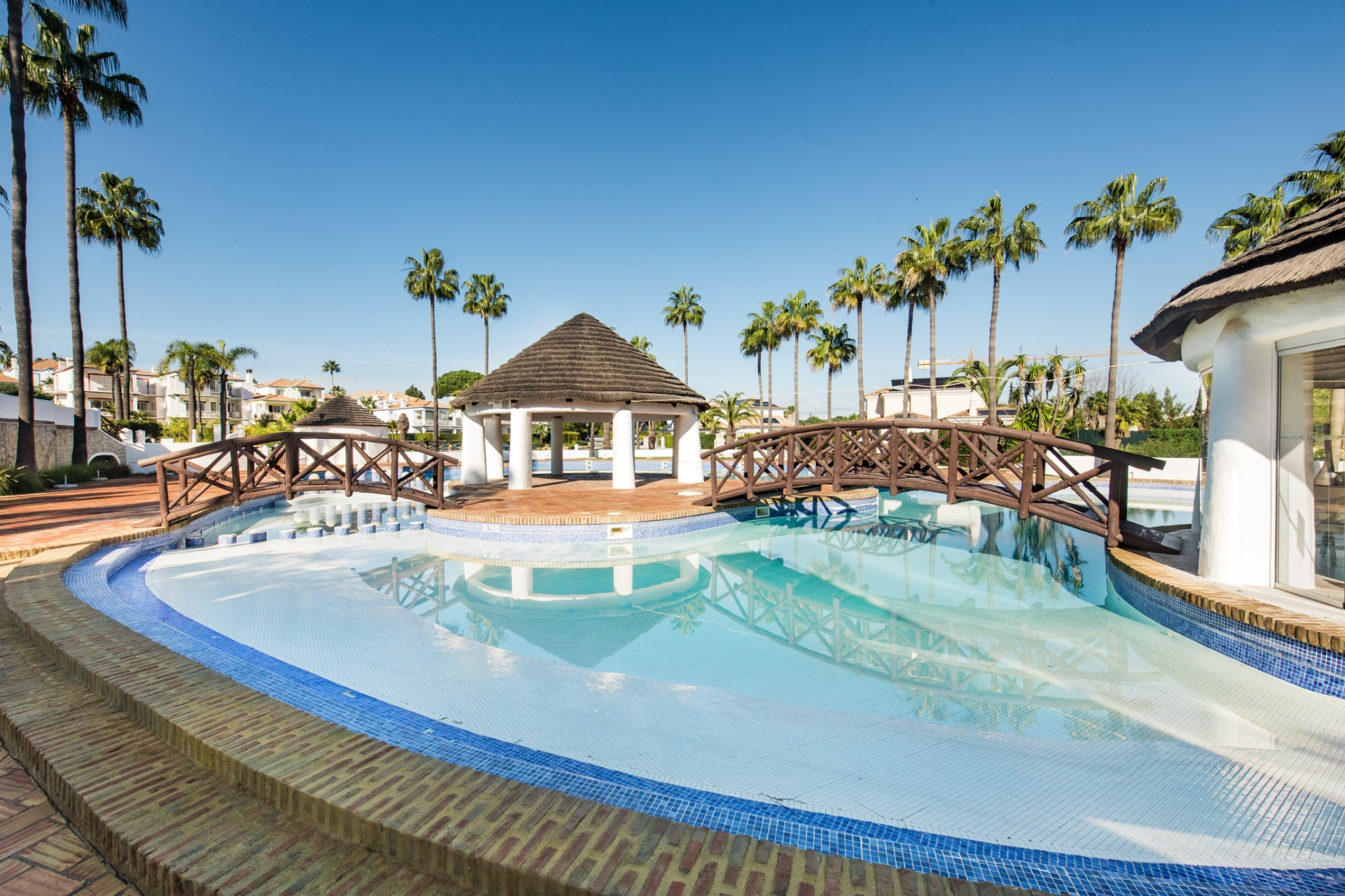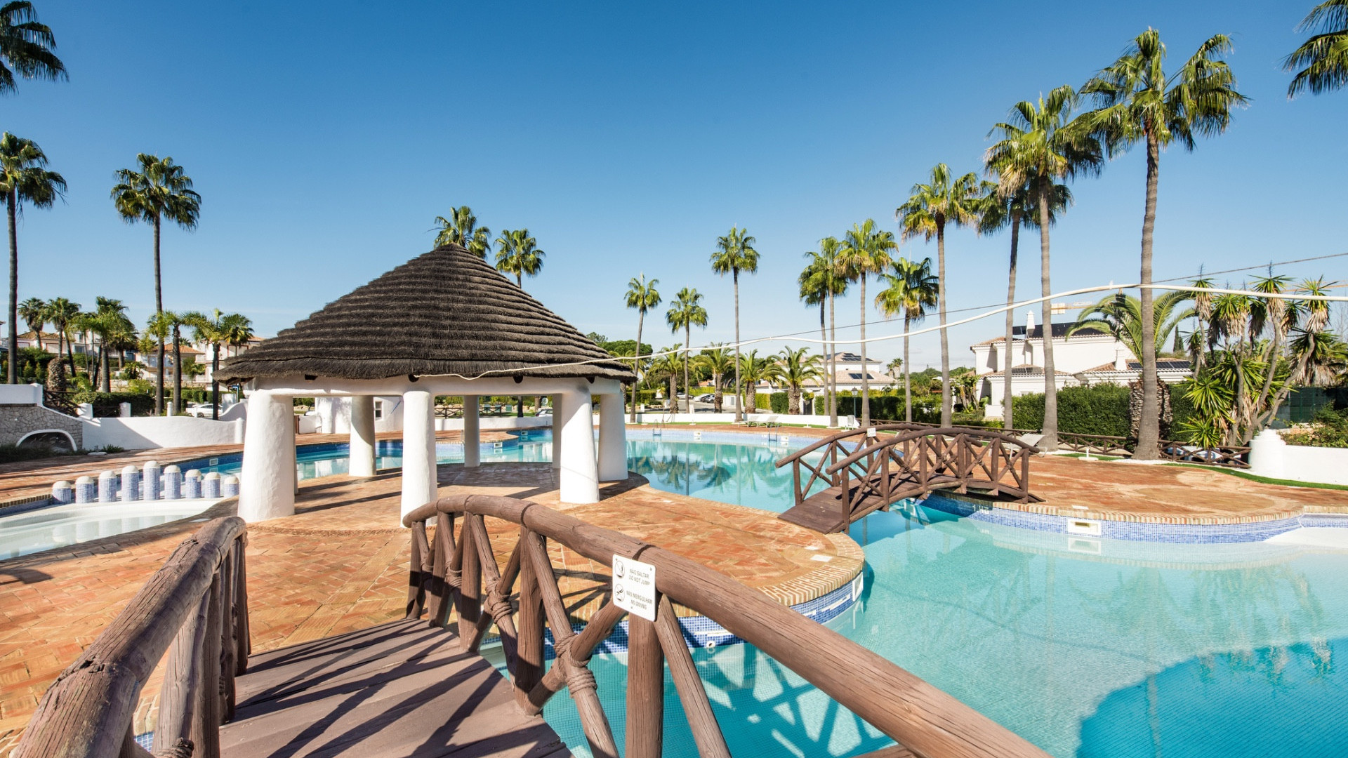 There is a large communal pool ideal for families with a childrens paddle area, tennis courts adjacent and small gym.