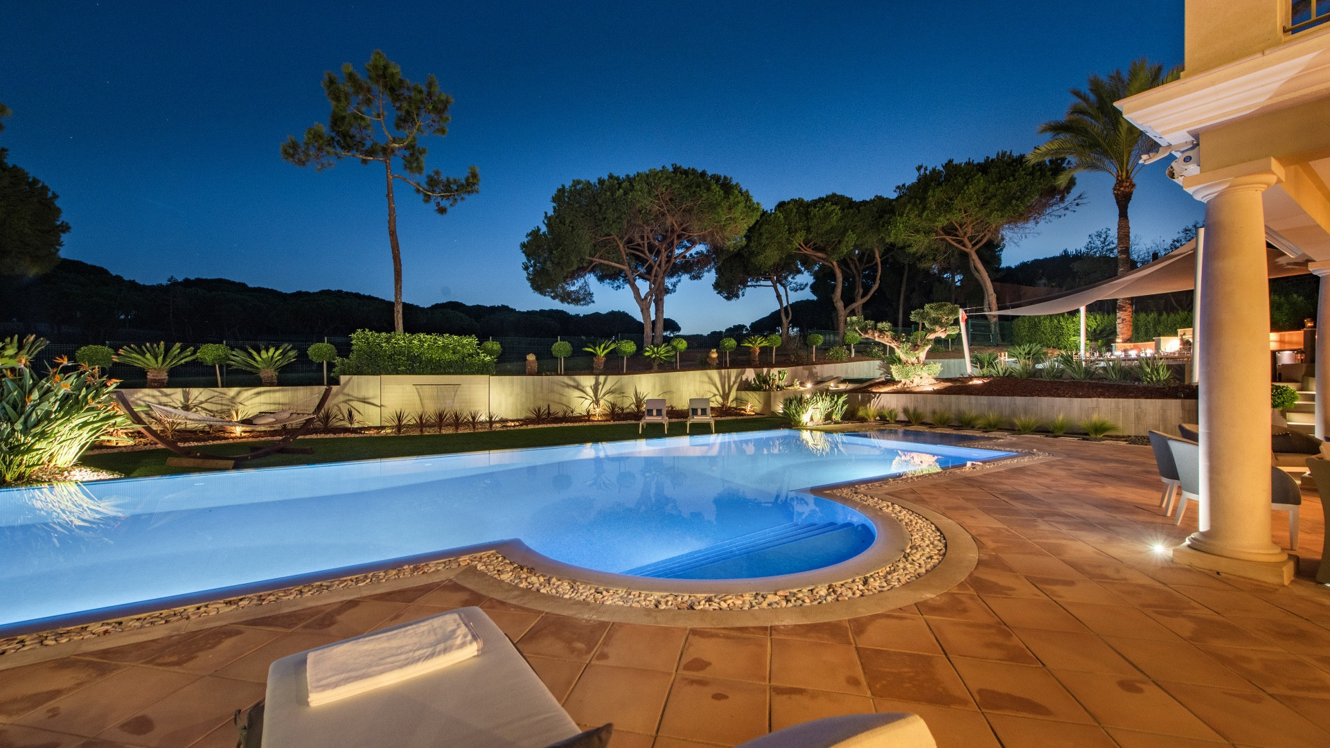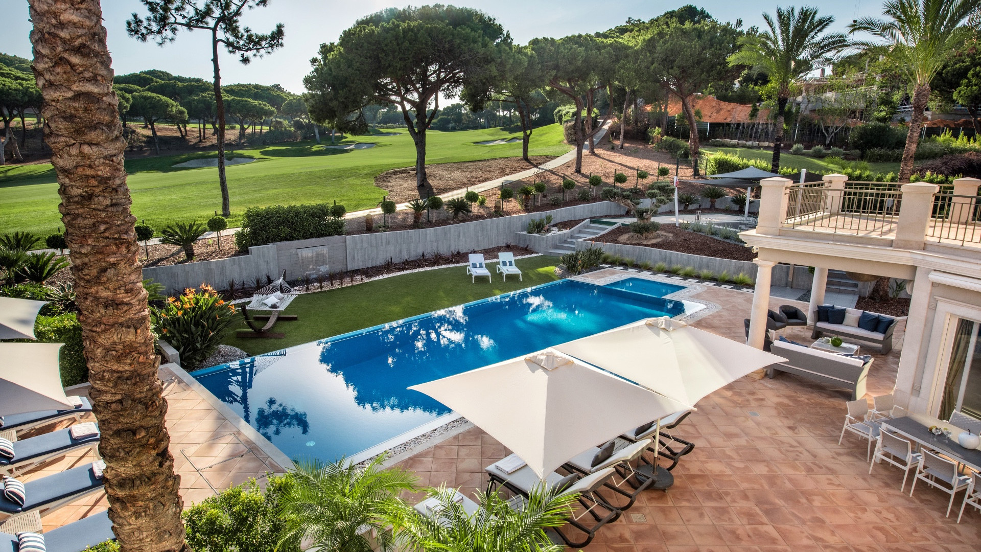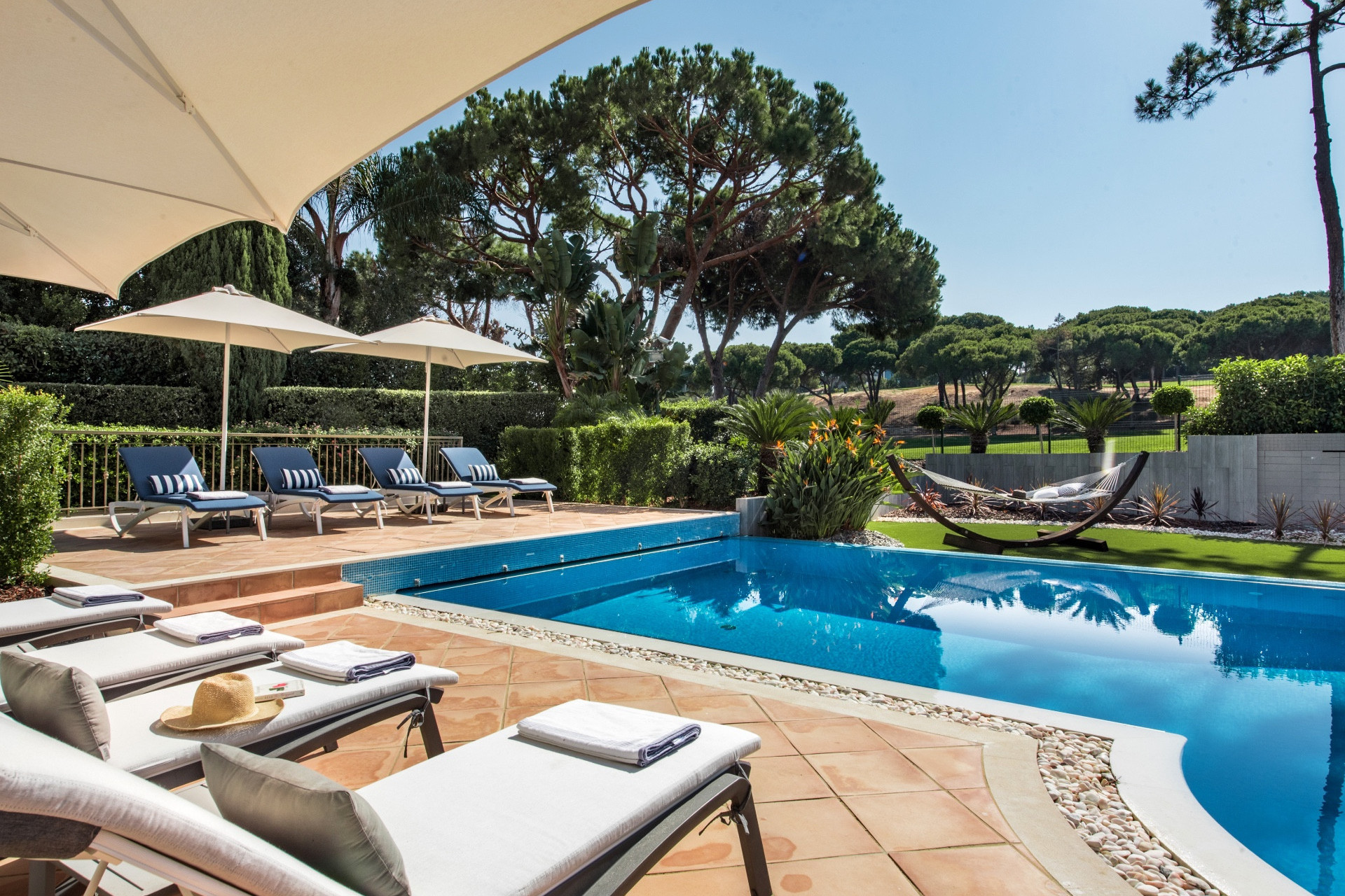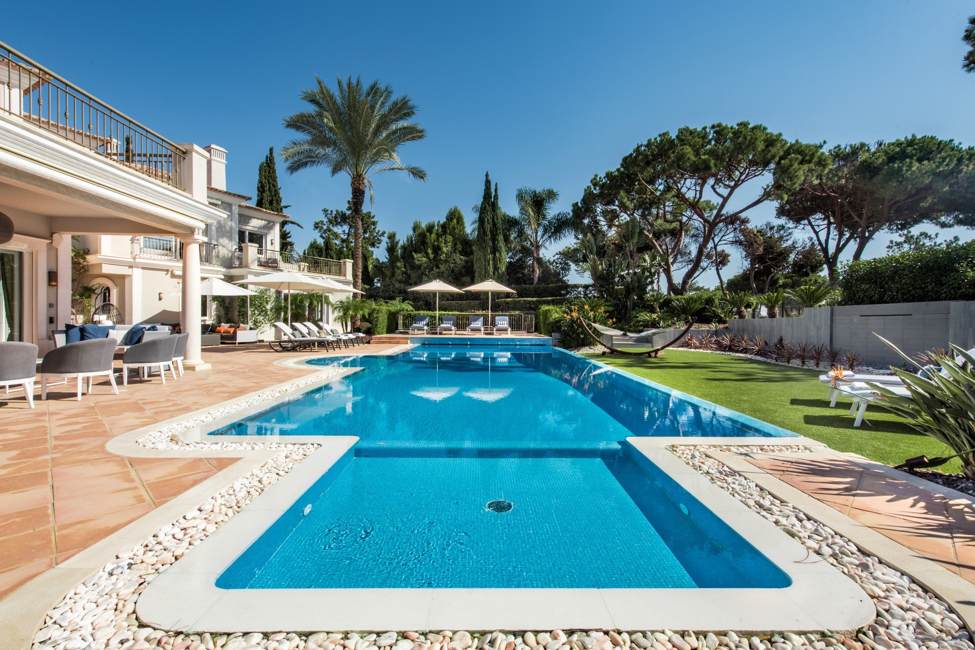 Luxury Algarve villa for rent in Quinta do Lago, a few minutes drive from Quinta shopping, restaurants, and bars as well as the beach. Faro International Airport is twenty minutes away from the villa.
